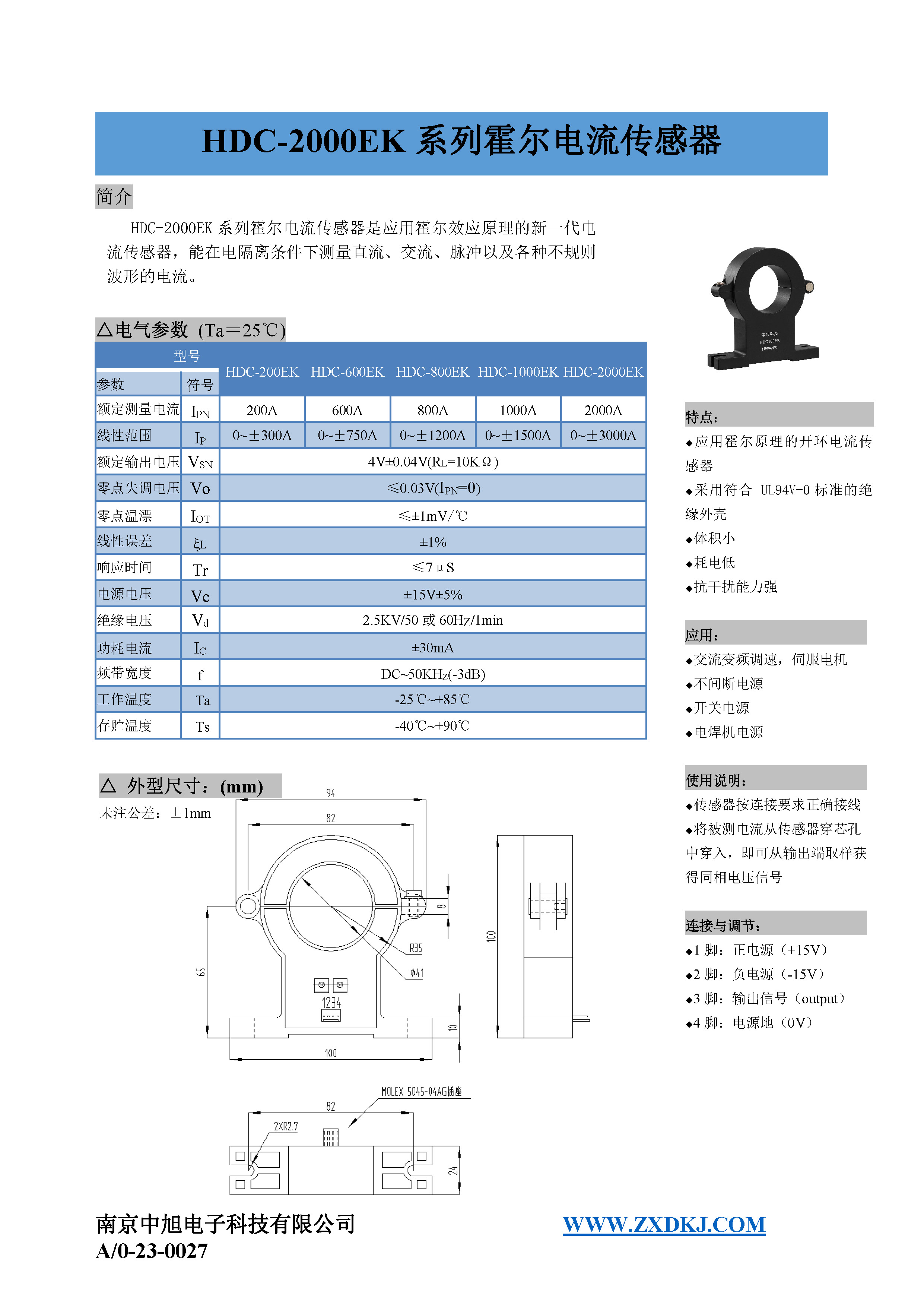 HDC-1000EK系列霍爾電流傳感器是應(yīng)用霍爾效應(yīng)原理的新一代電流傳感器,能在電隔離條件下測量直流、交流、脈沖以及各種不規(guī)則波形的電流。