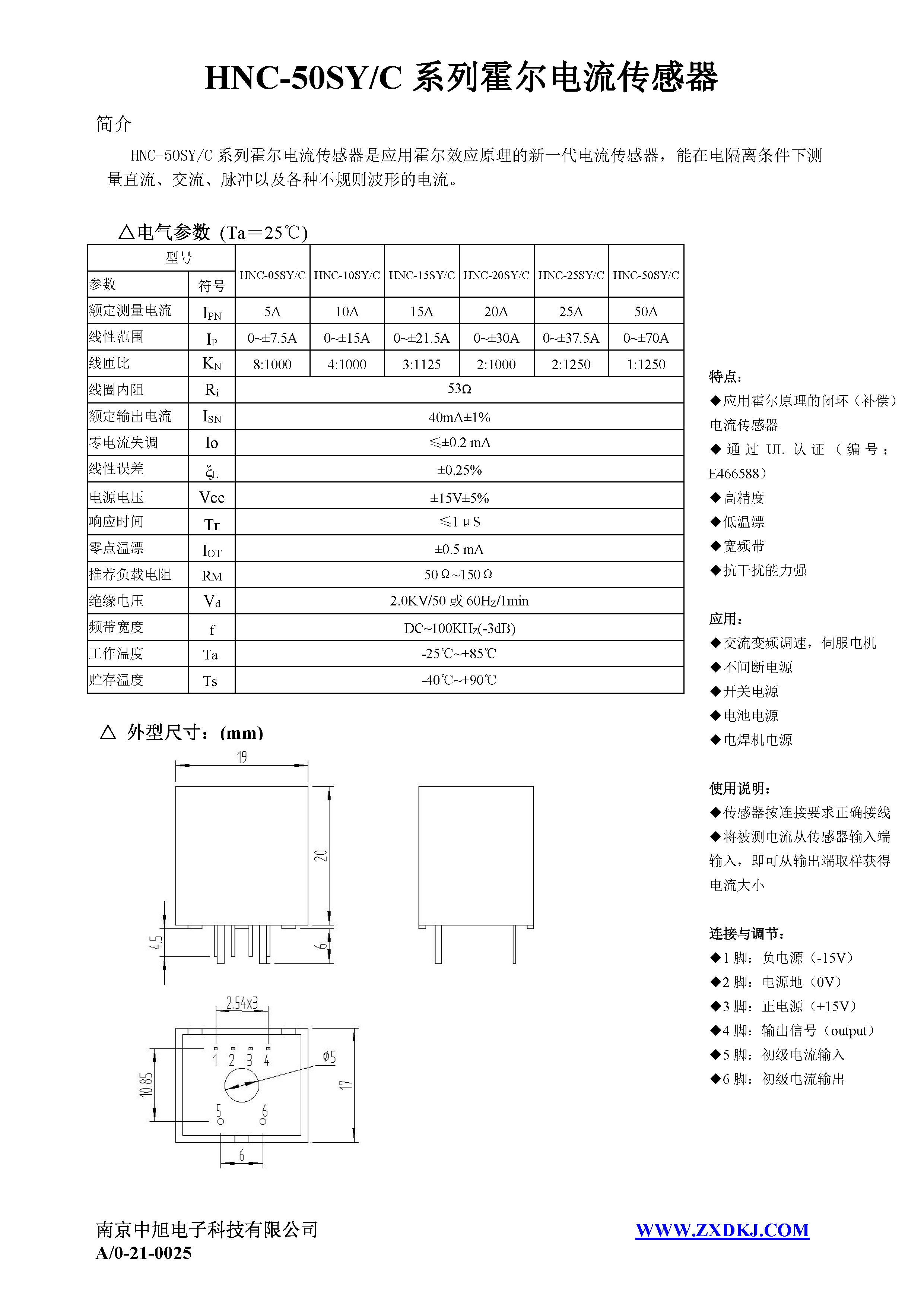 HNC-25SY/C系列霍爾電流傳感器是應用霍爾效應原理的新一代電流傳感器,能在電隔離條件下測量直流、交流、脈沖以及各種不規則波形的電流。